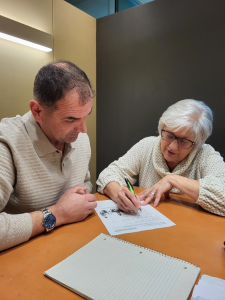 A master carpenter and artist in Ukraine, Vasyl lost his construction business in the war. Now living in America, he is determined to learn English in order to start a new life and eventually be reunited with his family here. To assist him in his journey, the Oakland Literacy Council partnered Vasyl with adult ESL volunteer tutor Brenda Gaunt, a retired teacher.